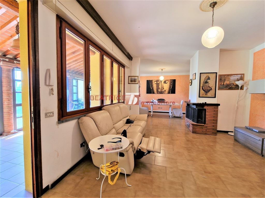 ZONA SAN FILIPPO - Ubicata in zona verde e tranquilla vicino ai servizi, villa su un unico piano, mq. 170 circa, in angolo con ottima privacy, realizzata molto bene nel 1985, con impianto elettrico sfilabile, mentre i bagni risalgono al 2017, si compone di ampio soggiorno e zona pranzo con camino con accesso ad ampio porticato e al giardino, cucina abitabile con camino, e con accesso al giardino, tre ampie camere, due bagni, stanza lavanderia. E' corredata da cantina sottostante la casa e da circa 500 mq. di giardino oltre ad area parcheggio. Classe energetica G. Ipe 210 kWh/mq. anno. Per motivi di privacy l'indirizzo pubblicato non corrisponde all'esatta ubicazione dell'immobile ma è indicativo della zona. Richiesta trattabile.