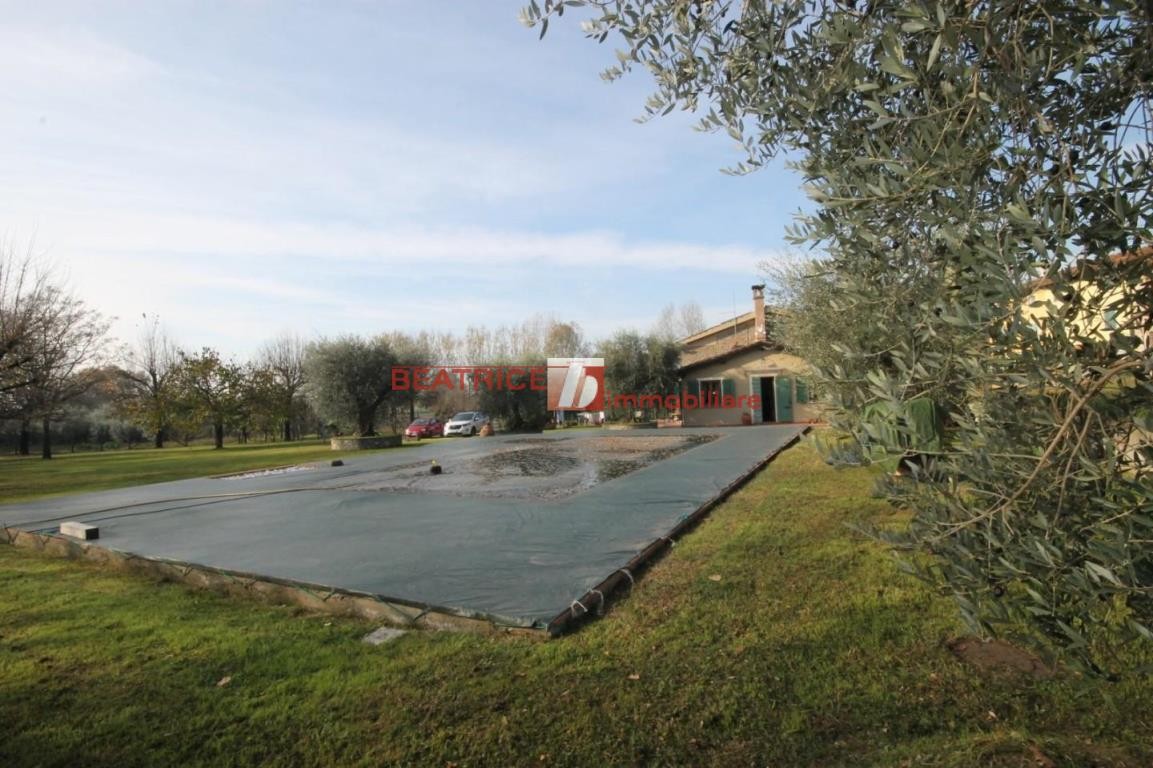 LUCCA COUNTRYSIDE - 10 KM. FAR FROM LUCCA CENTRE - IDEAL FOR TWO FAMILIES - Light detached farm house restored in the typical Tuscan style, consisting on the ground floor of a living room, a large kitchen with a heating fire place, a spacious patio, a bathroom, a laundry room; on the 1st floor, four double bedrooms, a bathroom. The house has high quality finishing and air conditioning. On the ground floor there is also a small apartment with a private entrance, a living room with a kitchen, a double bedroom and two bathrooms. All the property is completed with a private garden of 2.200 sq.m. with a wodden box and a swimming pool of 12x6 meters, besides several car parking spaces. Energy class E. Ipe 120,50 kWh/sq.m. per year. Asking price negotiable.