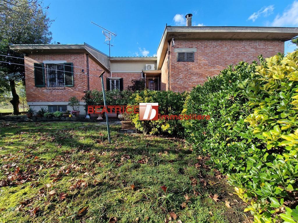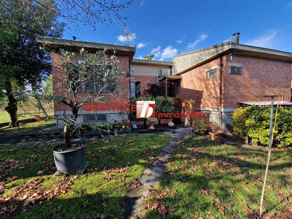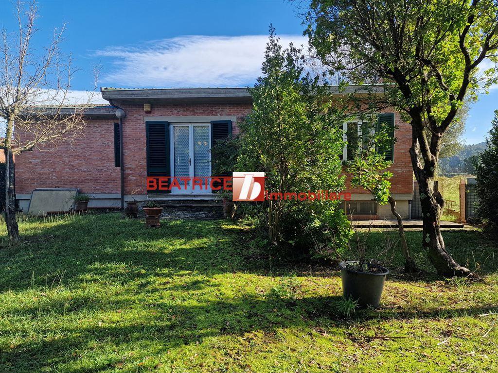 GUAMO - 4 KM. FAR FROM THE HISTORICAL CENTRE - Placed in a quiet and green area near services and a good context, light detached house built on 1975 and well maintained, disposed on one raised floor with a windowed basement, all of approx 250 sq.m. It consists on the main floor of an entrance hall, an elegant large living room connected to the garden, a dining room, a kitchen, a spacious double bedroom, two single bedrooms, a bathroom (it is possible to built an en suite bathroom); on the windowed basement, there are additional rooms, used as an apartment with a living romm with a fire place, a kitchen, two bedrooms, two bathrooms, a storage room and a garage and a boiler/laundry room. The heathing is divided between the two floor, with two boilers, the windows has double glasses and the main floor is equipped by air conditioning. It is completed with fanced garden of approx. 1,000 sq.m. Energy class G. Ep 210 kWh/sq.m. per year. The address written on the advertisement is not real but indicative for the area. Asking price negotiable.