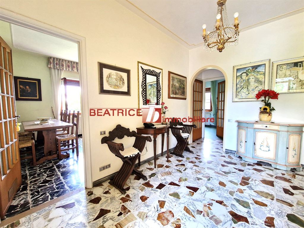 7 KM. FAR FROM LUCCA CENTRE - EXCLUSIVE SALE - Located in a green and quiet area, excellent context, excellent privacy, bright detached house built in 1967 and today healthy and in good condition, also suitable for two families, is composed, on the first floor (with ceiling height 2.90 m), an hallway, a living room with a terrace, a kitchen, a dining room with a fireplace, three large bedrooms, one with an en-suite bathroom with window, another windowed bathroom; on the ground floor (with ceiling height 2.45 m), accessible both through the exclusive entrance from the garden, and by an internal staircase, consists of a living room with a fire place, a kitchen with built-in barbecue, two bedrooms, one with an en-suite windowed bathroom, another bathroom with a window, a storage room and a spacious porch with a fire place connected to the garden. It is equipped with about 1.000 sq.m. of garden and parking area, a garage two storage rooms and a bathroom a total of about 50 sq.m, all fenced and accessible through an automatic gate and a pedestrian one. Possibility to have further land. The property is available immediately. Energy class G Ep 150 kWh/mq year. Asking price negotiable.