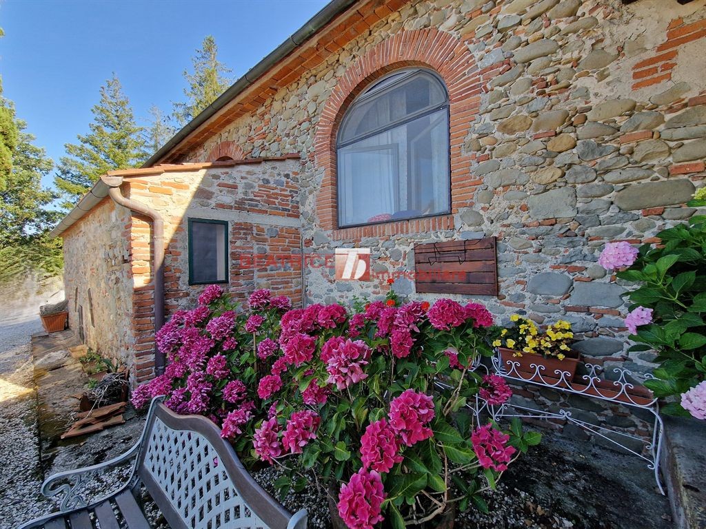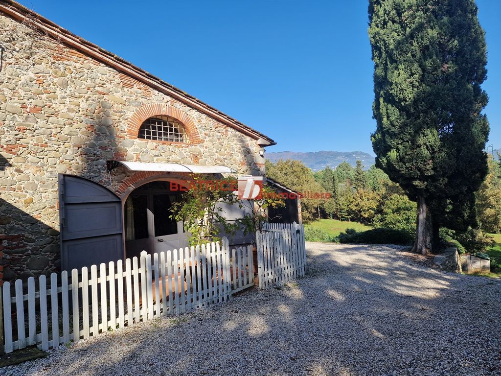 GRAGNANO - 15 KM FAR FROM LUCCA CENTRE - RENTED HOUSE SUITABLE ONLY FOR INVESTORS - Placed in a green and quiet area, hilly position, not isolated and in a good context, characteristic semi detached farmhouse renovated early 2000 in a rustic style with the facade in stone, 120 sq.m. approx. on two levels, consisting on the ground floor of a large living room as a loft with an open plan kitchen, then a double bedroom with an en suite bathroom, another bathroom, a laundry and storage room; upstairs there is an attic, a bedroom and a study. Air conditioning, wooden windows with double glazing, independent heating with LPG, water supply, sewerage with biological pits. It is accompanied by a fenced patio at the entrance of the house ideal to live a table for eating outside, and about 400 sq.m of a terraced and steep land at about 10 meters far from house. Possibility of additional land. The house is also completed with an external storage room with an oven and two car parking spaces. All the complex is fenced and closed by an automatic gate. Energy class G. Ipe 199,50 kWh/mq. year. The house is sold rented with a long-term contact The advertised address does not correspond to the exact location of the property but is indicative of the area. Asking price negotiable.